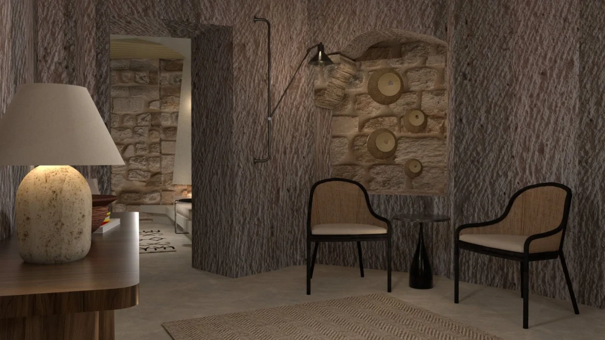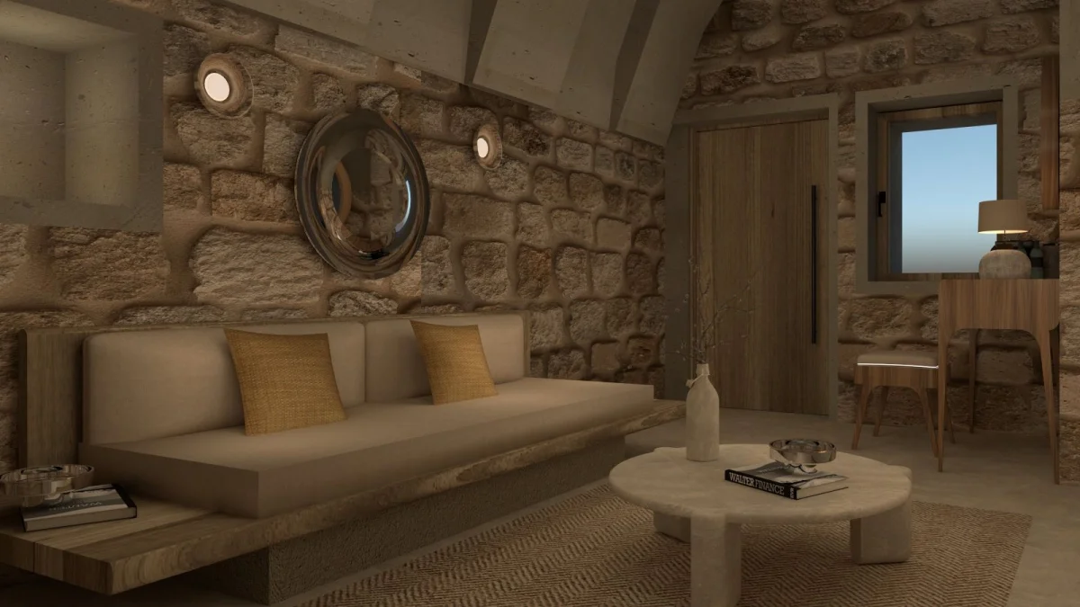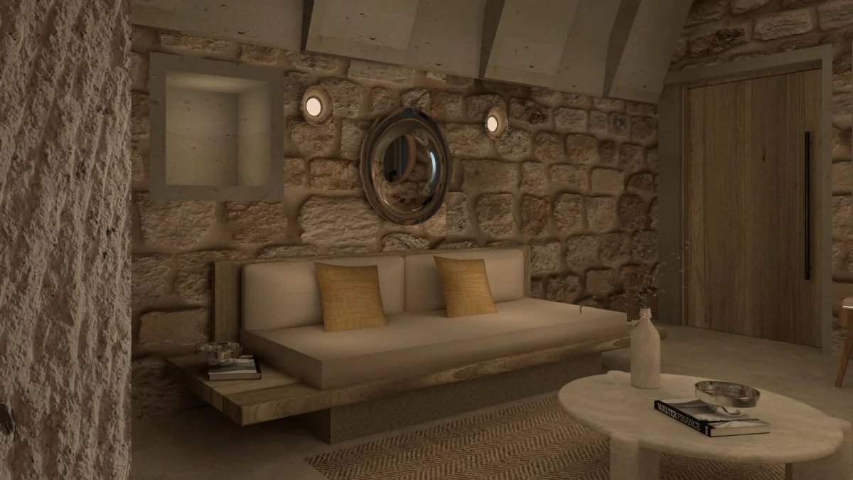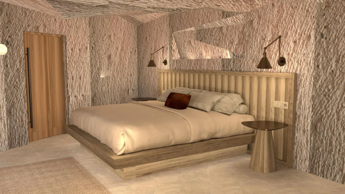 Tarihin derinliklerinde uyumak isteyenler için özenle tasarlanmış benzersiz odamız, antik Kapadokya mimarisinin büyüleyici atmosferini modern konforun zarafetiyle buluşturuyor. Doğal taş dokuların ve geleneksel tasarım öğelerinin uyumlu bir şekilde bir araya geldiği odamız, size zamanda yolculuk hissi yaşatırken tüm modern olanaklarla donatılmıştır.